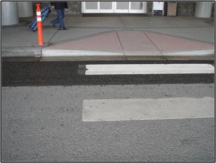 Typical crosswalk, except the brighter black and white area in the rear has been pressure washed to remove adhered solids.