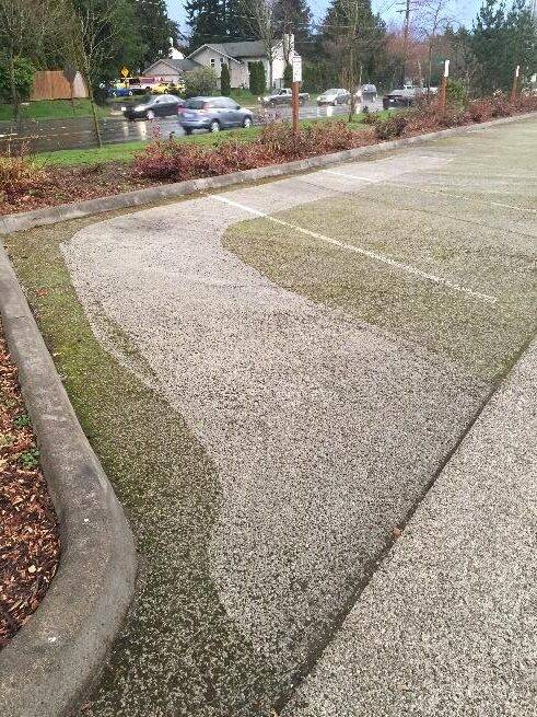 In the Northwest, when pervious sidewalks and parking lots became green and slick when wet, it was the pervious installations crying out for help.  Dirt and organics filtered out by pervious in other parts of the country just do not have the climatic advantage of that in the Northwest, so the pervious surface cannot so loudly cry out for help – and improved maintenance practices
