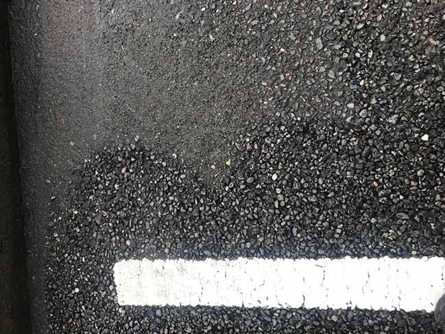 Street View. Note lack of surface texture in upper left area of photo. “The filter was full.” Lower right shows the pervious after one pass of MCV emptying the filter