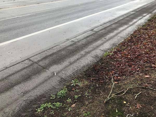 Macro parking lot view. Can’t miss this cry for help in the Pacific Northwest. (Im)permeable concrete being made permeable again. Path made by single pass of MCV.